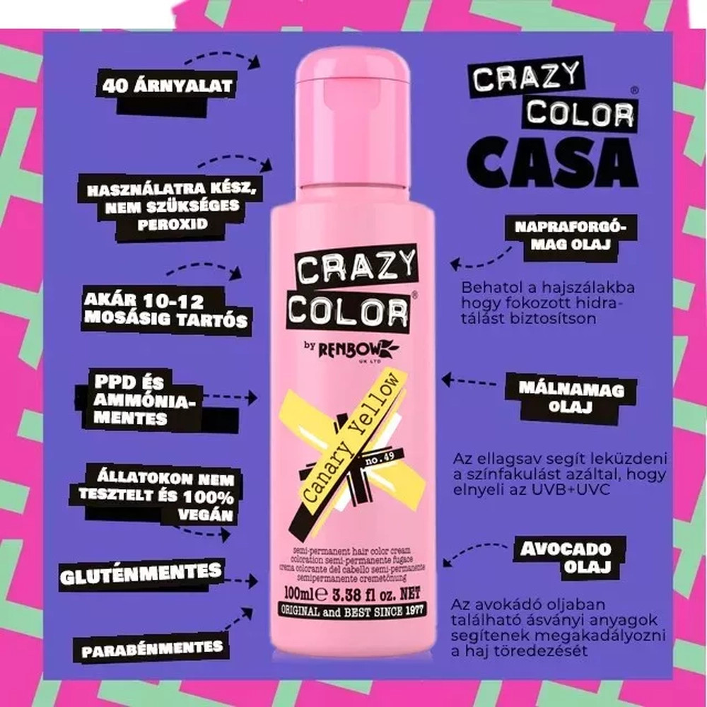 Objavte svet Crazy Color, ikonickej značky farieb na vlasy, ktorá už viac ako 40 rokov dobýva srdcia kaderníkov a trendsetérov. Vďaka svojej krémovej konzistencii a jednoduchej aplikácii si môžete žiarivú farbu vlasov dopriať aj z pohodlia domova!