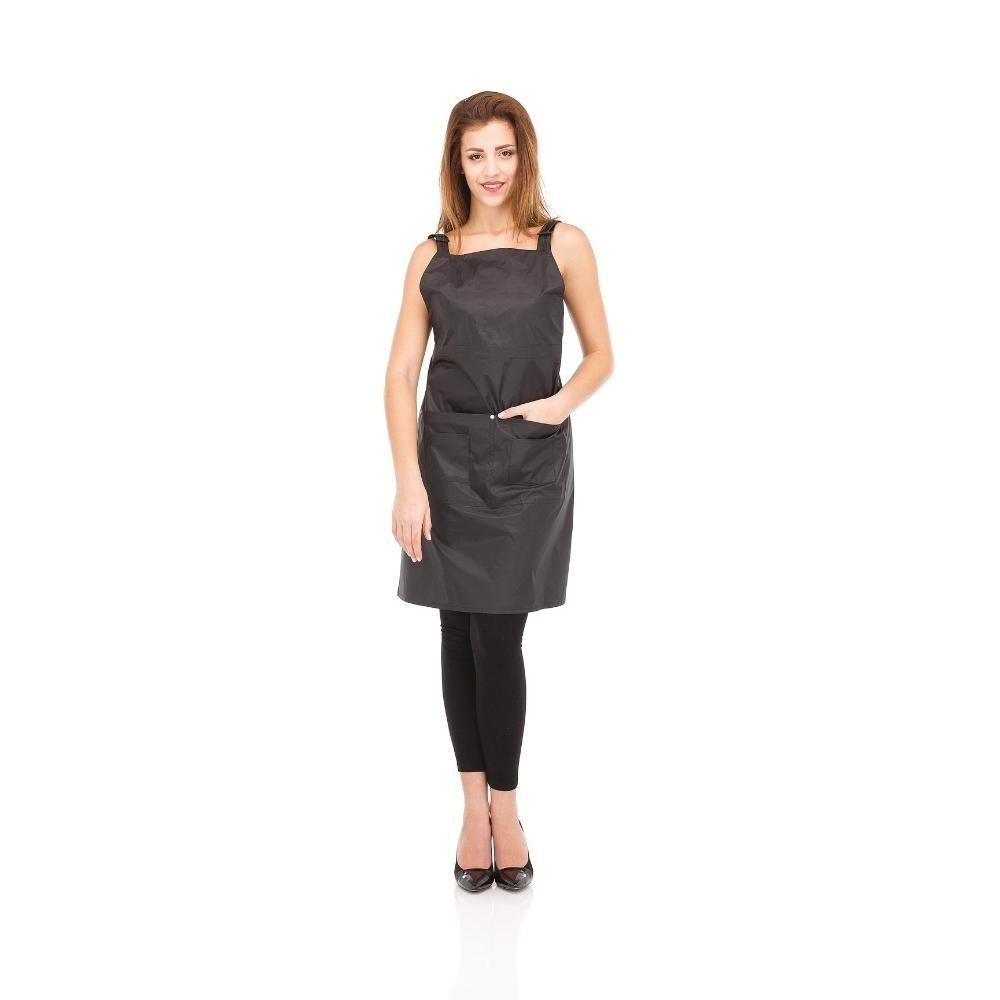Fedezze fel a stílusos és praktikus fodrász festő kötényt, amely egy extra hosszú kivitelnek köszönhetően garantálja a kényelmet és a maximális védelmet. Az elegáns fekete szín és a strapabíró, 100%-ban lemosható PVC anyag tökéletes választássá teszi a mindennapi használatra, nemcsak a fodrászatban, hanem bárhol, ahol művészi alkotásra van szükség.