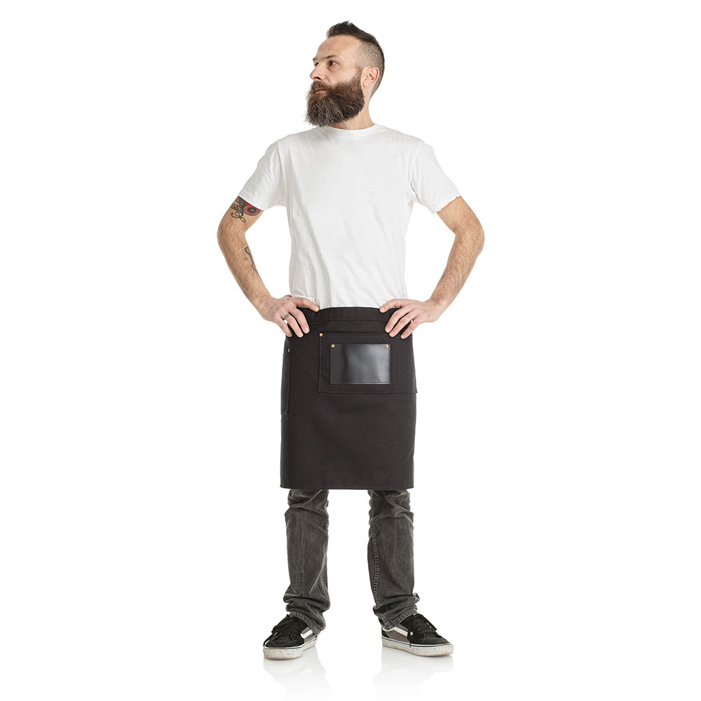 Obohaťte svoj barber rituál o jedinečný vintage štýl! Naša zástera z odolného čierneho juty so vzhľadom umelej kože prináša do vášho pracovného priestoru štýlový a profesionálny dojem.