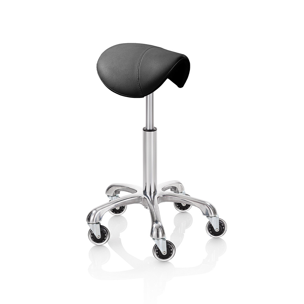 Ismerje meg a Roller Pro Elité Compact M forgózsámolyt, amely stílust és praktikusságot hoz bármely fodrász- vagy szépségszalonba! Ez a modern nyeregzsámoly fekete műbőr kárpittal és elegáns króm csillag talppal rendelkezik, így tökéletes kiegészítője lehet a szalon berendezésének. Legyen szó vágásról vagy a recepciós pult mögött ülve végzett munkáról, ez a zsámoly a kényelem és a professzionális megjelenés ideális kombinációját nyújtja.