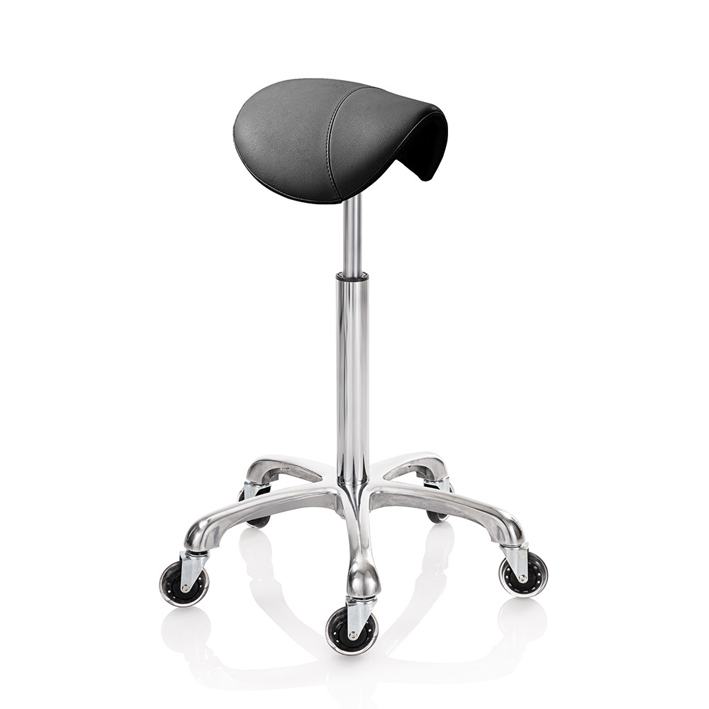 Fedezze fel a Roller Pro Elité Compact L forgózsámolyt, amely a modern fodrászszalonok és szépségközpontok ideális kiegészítője. Elegáns fekete műbőr kárpitja és stílusos króm csillag talpa nemcsak a szalon berendezését emeli ki, hanem a professzionális munkát is megkönnyíti. Legyen szó vágásról vagy a recepciós pultnál ülésről, ez a forgózsámoly minden helyzetben megállja a helyét.